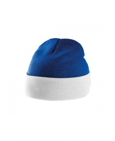 100% Acryl. Modische Mütze mit gestricktem Umschlag in Kontrastfarbe.
