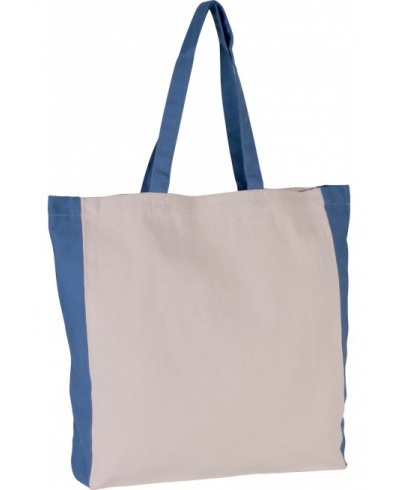Geräumige Tasche aus 310 g/m² Baumwollcanvas mit Seitenfalte und kontrastfarbenen Tragegriffen. Fassungsvermögen: 15 L.